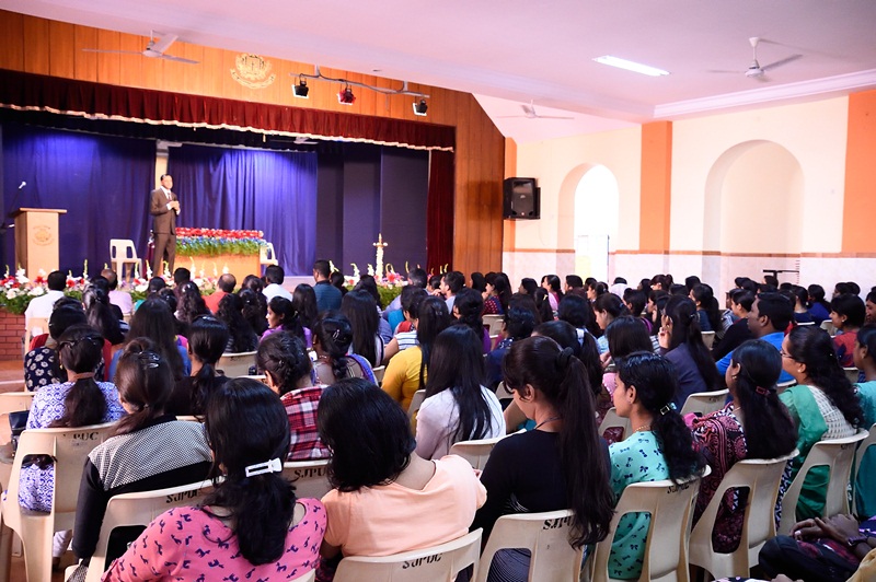 Inauguration and Orientation programme for both first and second year students was organized on Sunday 4 August, 2016 in audio visual hall. The programme was inaugurated by rector, Rev. Fr. Anthony Joseph SJ and Rev. Fr. Maxim Dias SJ. The key note address was delivered by Mr. Srinivas Laximinaryana Narayana, Chartered Accountant and Managing Director of Life transformers. Thereafter, students were given oriented on the concept of Twinning Model, its features, relevance, advantages and limitations. After a brief break, second session was engaged to familiarize about the Syllabus, specialization, teaching-learning methodology, examination pattern and ended with campus rules and regulations.